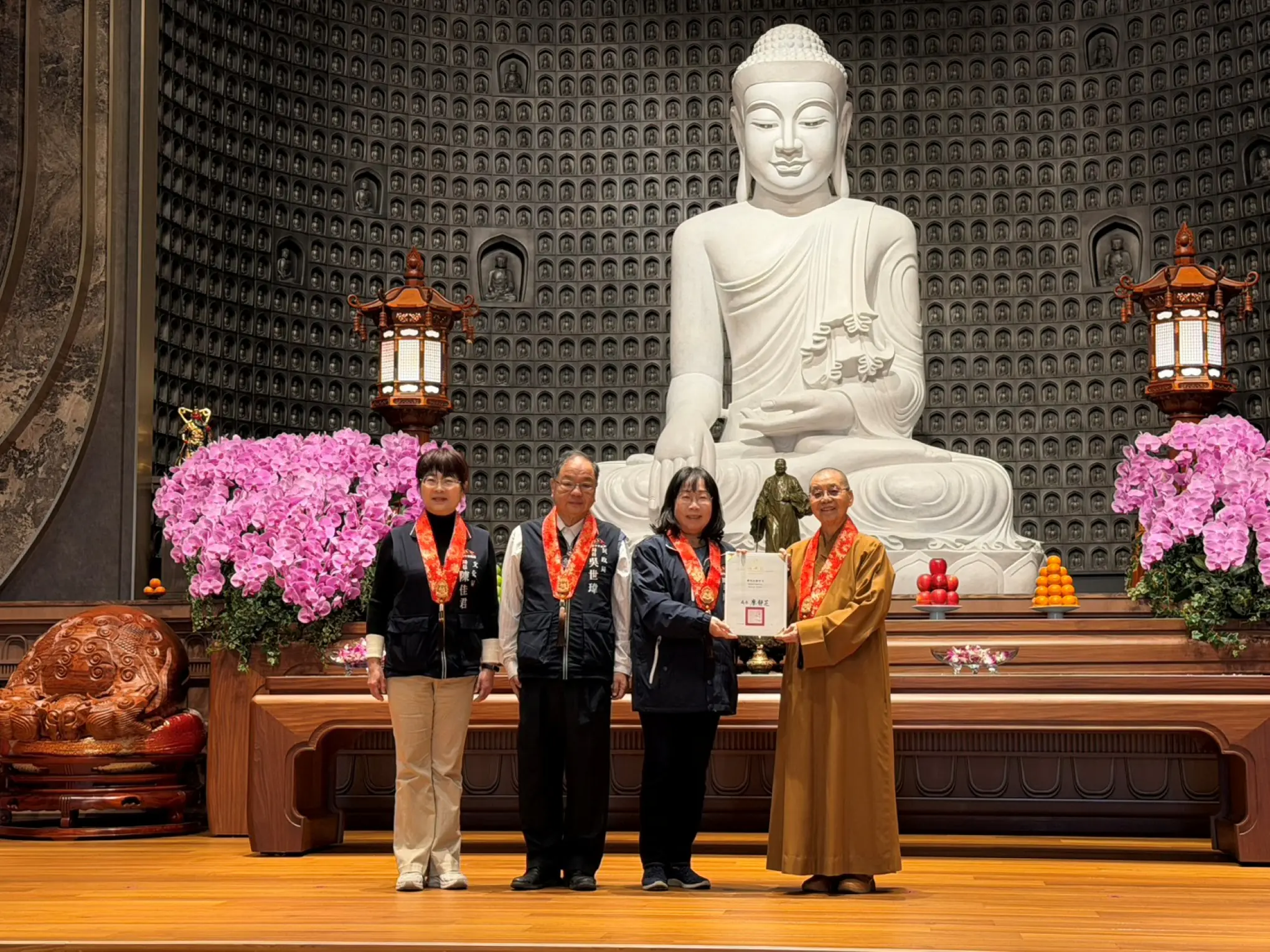 時逢歲末寒冬、春節將至,佛光山惠中寺攜手佛光山慈悲社會福利基金會,今(1)日於惠中寺三樓大殿舉辦慶祝法寶節暨寒冬送暖活動,發放1,400戶福田戶物資箱,並致送每戶3,600元關懷金,同時提供熱騰騰的臘八粥,為寒冬注入溫暖與祝福。台中市政府民政局長吳世瑋代表市長盧秀燕出席致意,肯定佛光山惠中寺長期投入公益關懷,以實際行動溫暖弱勢族群,並透過宗教文化傳遞正向能量,為社會帶來安定力量。