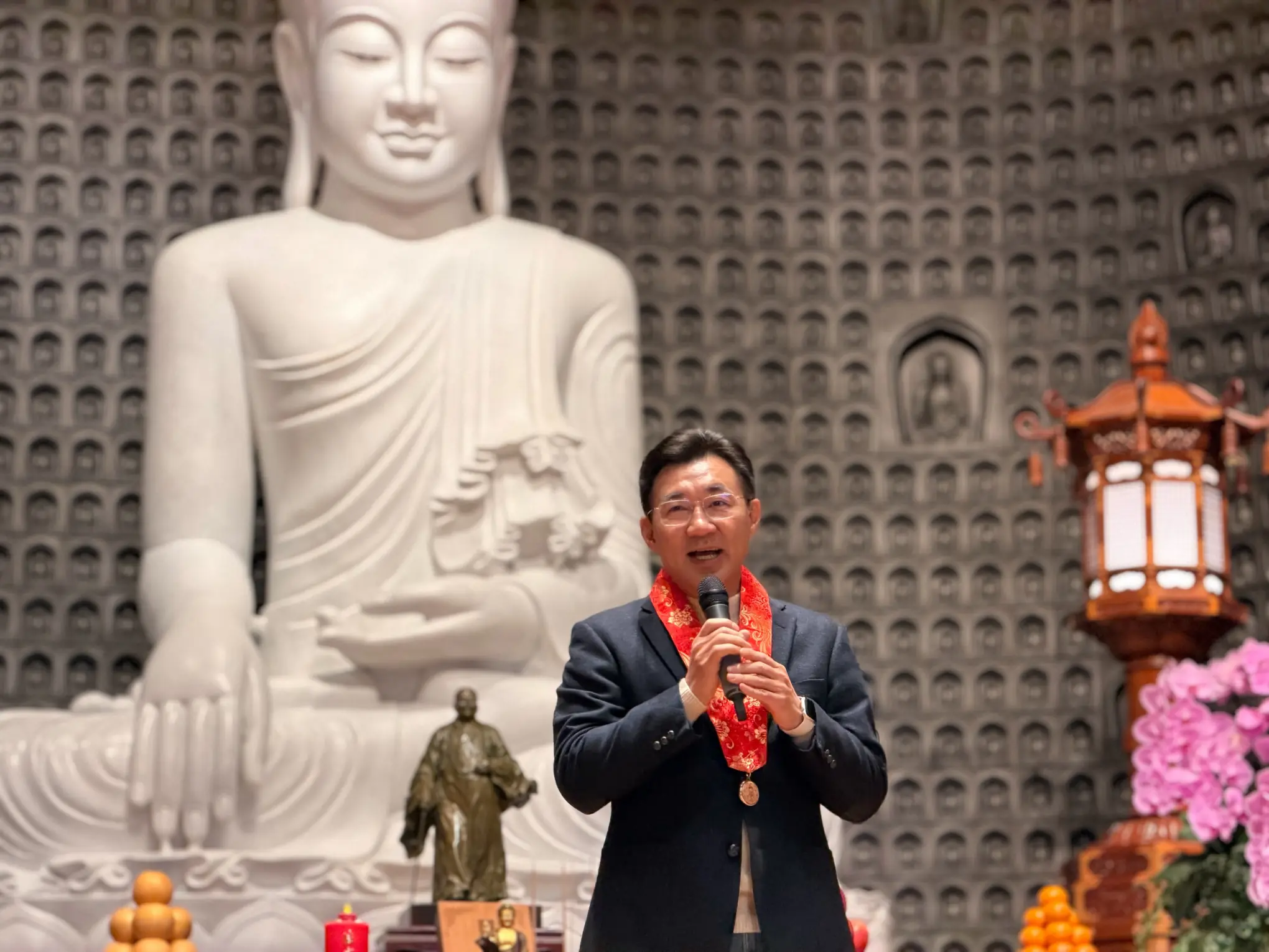立法院副院長江啟臣表示,雖然戶外透著寒意,但在惠中寺、佛光人與人間佛教的薰陶下,讓現場充滿溫暖。江副院長強調,臘八粥不僅是一碗粥,多樣食材的融合象徵社會包容,火候的調配則代表和諧共處的節奏,並感謝惠中寺長期深耕大台中,在寒冬中伸出援手提供物資與便利,同時引用星雲大師墨寶,祝福大家新的一年「和諧共生、百業成功」,期盼社會在安定中迎向幸福。