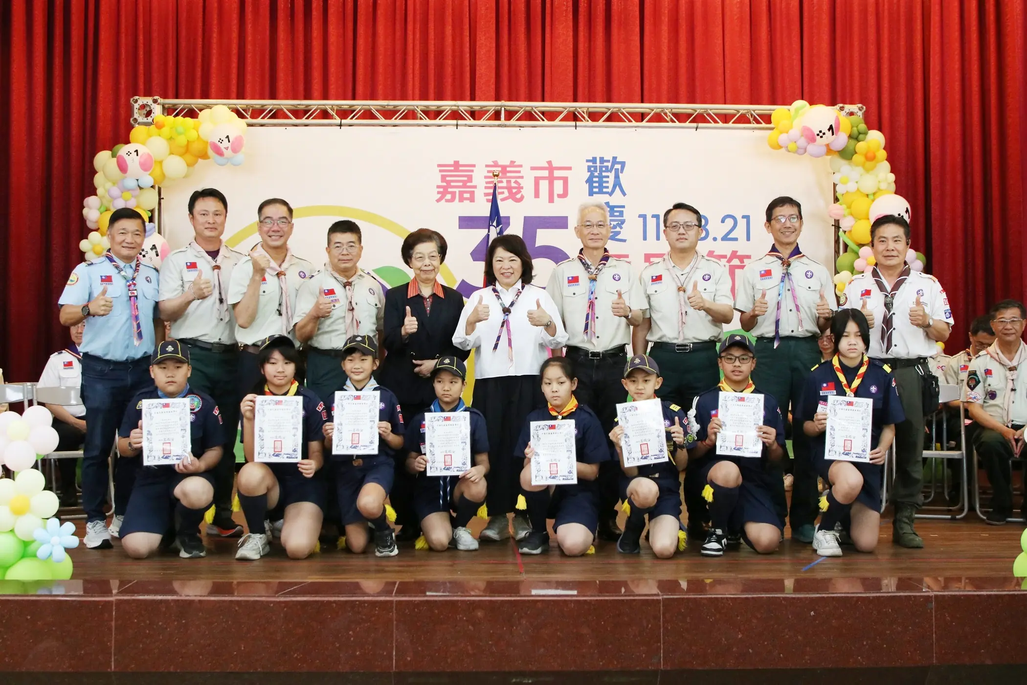 嘉義市為慶祝115年童軍節於今(21)日在博愛國小舉行慶祝大會,將近550位各級童軍夥伴一同參加,大會由嘉義市童軍會理事長黃敏惠市長主持,並為表現傑出的童軍頒發獎項,表揚童軍服務、勇於探索與學習的精神;嘉義市各校園長、張博雅資政與大小童軍今日也齊聚一堂,共同慶祝屬於童軍的節日。